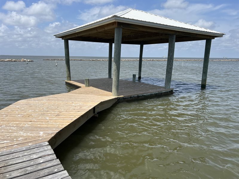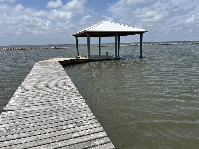 Enjoy a newly updated fishing pier, now featuring a covered section to keep you comfortable on sunny days or during light rain. After a day on the water, unwind on the spacious covered deck overlooking the bay, or head downstairs to enjoy a seafood boil or BBQ with plenty of space for everyone to gather.