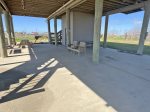 - Covered front deck area with patio furniture