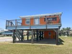 Come unwind on the front porch and take in the beautiful sunrise over the Gulf waters. This welcoming beach camp features a spacious open floor plan with combined living, dining, and kitchen areas — perfect for gathering the whole family.